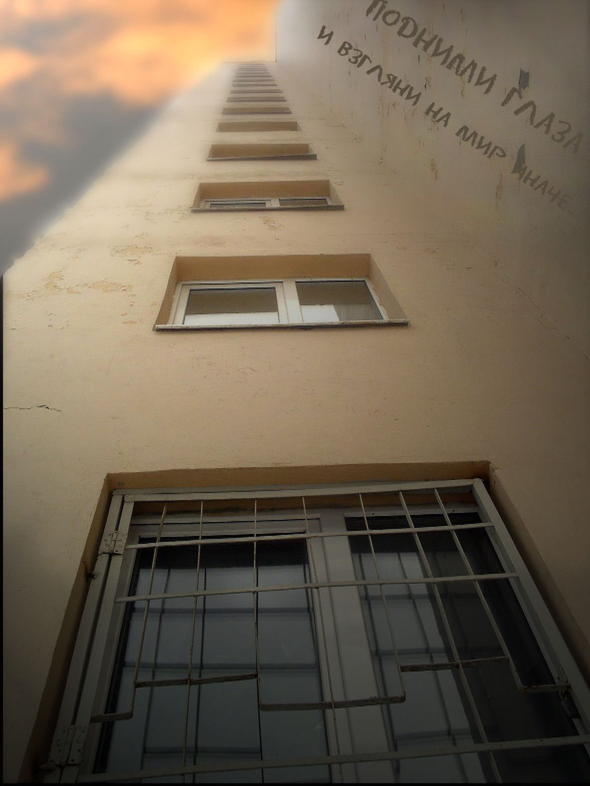 меня ща тут наверно порвут.... и сделают врагом народа.... НО не вижу в данном фото ничего оригинального и интересного... слова... эээм ну слова мб еще и подходят.. но шрифт НЕ понравился совсем...+ было бы куда круче если бы небо было более интересным... таинственным....+ дом не сказать что б очень привлекает.. короче воть)) но задумка классная!