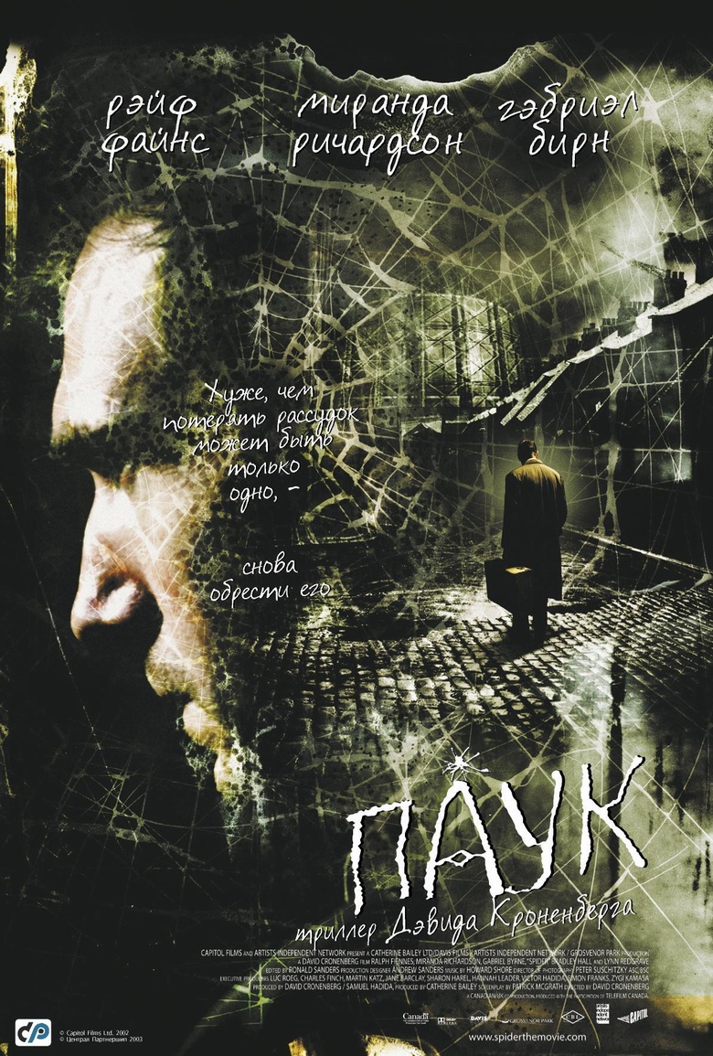 Сюжет: Человек-паук — вовсе не мускулистый парень в трико. Человек-паук носит четыре рубашки одновременно, а сверху ещё пиджак, ковыляет сгорбившись, бормочет себе под нос и чирикает в блокноте каракули. С блокнотом в руках всклокоченный аутист Деннис Клег выходит из психушки побродить по лондонским улицам и постепенно вспоминает обстоятельства душевной травмы, которая некогда превратила его из просто зловещего ребенка в совсем уж асоциальную тварь. | В ролях: