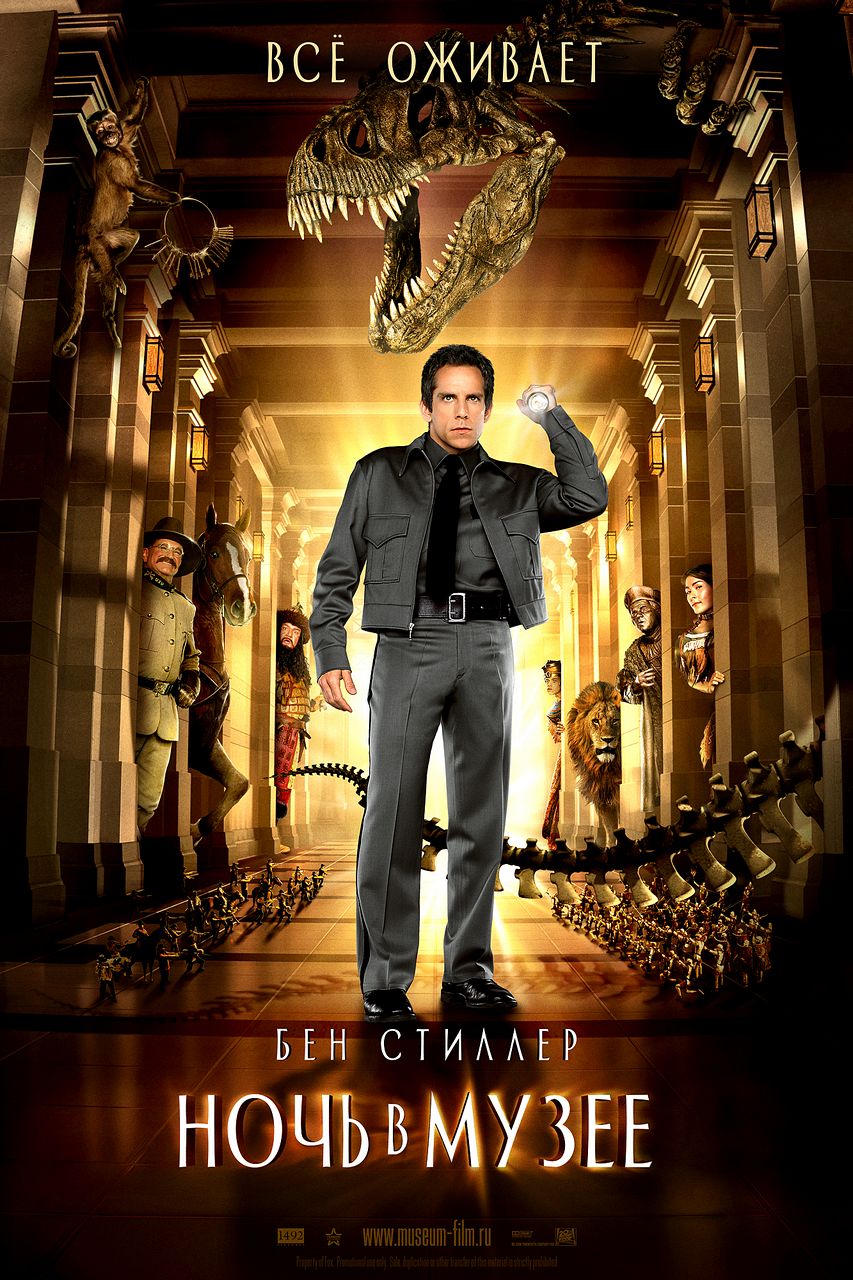 Сюжет: Охранник музея естественной истории в первый же день работы на новом месте попадает в переделку – оказывается, по ночам все экспонаты оживают, и в музее воцаряется настоящий хаос!